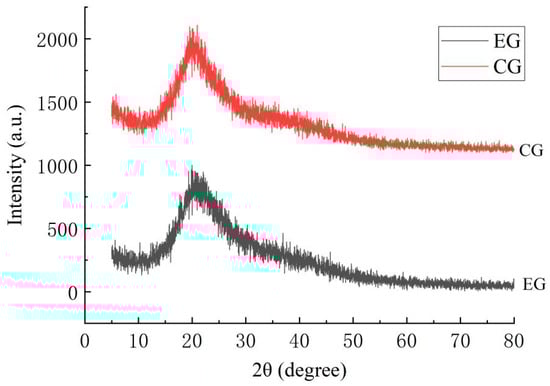 The XRD of composite edible gel films (CG: the control group without PE; EG: the experimental group with PE added).