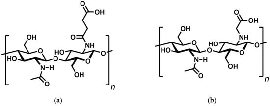 Structure of N-Succinyl chitosan (a) and N-Carboxymethylchitosan (b).