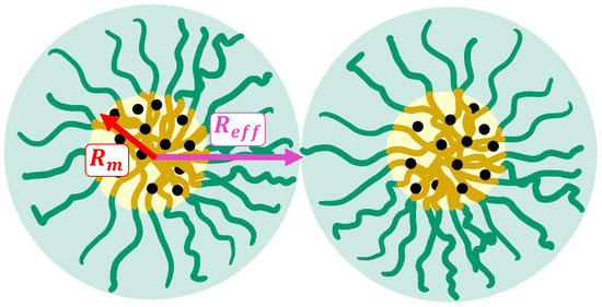 Schematic representing the average radius of the micelle’s core (Rm) and the effective interaction radius between micelles (Reff).