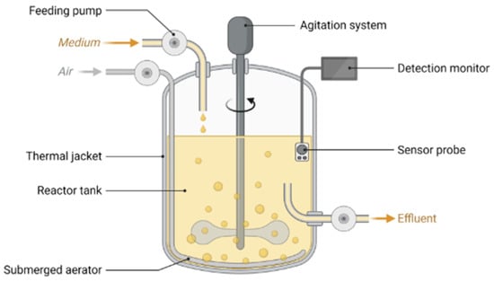 A stirred-tank bioreactor equipped with an aeration system, a thermal jacket, and integrated sensors [83].