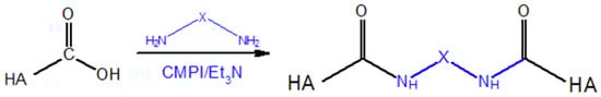- Wada, T.; Chirachanchai, S.; Izawa, N.; Inaki, Y.; Takemoto, K. Synthesis and Properties of Hyaluronic Acid Conjugated Nucleic Acid Analogs—1: Synthesis of Deacetylhyaluronan and Introduction of Nucleic Acid Bases. J. Bioact. Compat. Polym. 1994, 9, 429–447. [Google Scholar] [CrossRef]