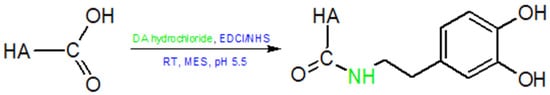 - Schanté, C.E.; Zuber, G.; Herlin, C.; Vandamme, T.F. Chemical modifications of hyaluronic acid for the synthesis of derivatives for a broad range of biomedical applications. Carbohydr. Polym. 2011, 85, 469–489. [Google Scholar] [CrossRef]