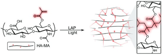 - Pérez, L.A.; Hernández, R.; Alonso, J.M.; Pérez-González, R.; Sáez-Martínez, V. Hyaluronic Acid Hydrogels Crosslinked in Physiological Conditions: Synthesis and Biomedical Applications. Biomedicines 2021, 9, 1113. [Google Scholar] [CrossRef]