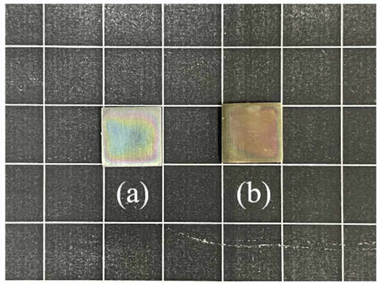 Figure 3 shows the surface view of TC4-OH (a) and TC4-initiator (b). Macroscopically, the successful grafting of BIBB caused the surface of the titanium alloy to change from silver-white to yellow compared with TC4-OH. Therefore, the successful synthesis of the TC4-initiator can also be initially judged from appearance.