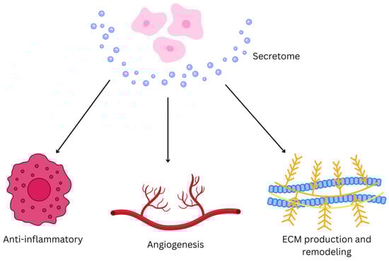 - Prado-Yupanqui, J.W.; Ramírez-Orrego, L.; Cortez, D.; Vera-Ponce, V.J.; Chenet, S.M.; Tejedo, J.R.; Tapia-Limonchi, R. The Hidden Power of the Secretome: Therapeutic Potential on Wound Healing and Cell-Free Regenerative Medicine—A Systematic Review. Int. J. Mol. Sci. 2025, 26, 1926. [Google Scholar] [CrossRef]