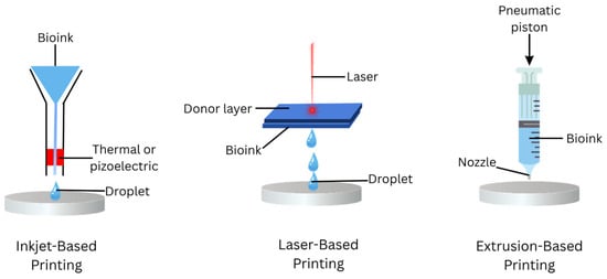 | Inkjet-Based Printing | Deposits bioink onto a substrate either as a continuous flow or discrete droplets using electronically controlled ink cartridges |