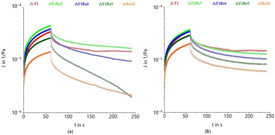 In addition to the application of oscillatory stress to determine the dynamic moduli, the viscoelastic properties of fiber-enriched dough can also be defined by applying constant stress over a period of time, conducted through the creep and recovery test [14]. Compliance (J) describes the elastic or viscous deformations that occur in dough at a constant stress.
