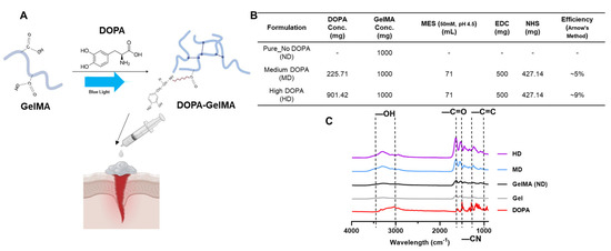 4.2. Synthesis of GelMA-DOPA Conjugate