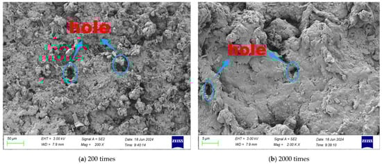 - The contact angle of rubber particles treated with NaOH, NaClO and KH550 decreased by 22.5%, 30.2% and 36.7%, respectively. NaOH solution improves the adhesive strength of rubber particles and polyurethane gels by eliminating zinc stearate on the rubber surface and forming a rough porous surface. The NaClO solution promoted the penetration of the adhesive molecules by removing the residual solvent on the surface of the rubber particles and forming a pore structure, thereby enhancing the bonding strength. The KH550 solution further improves the roughness of the surface of the rubber particles and the number of corrosion pores; enhances the air-entraining effect, fluidity and interfacial bonding strength; and significantly improves the working performance of the rubber particle mixture. After surface modification by three methods, the element types of rubber particles were significantly reduced, among which the element types of rubber particles treated by the KH550 solution decreased the most, indicating that the removal effect of surface impurities was the most significant.