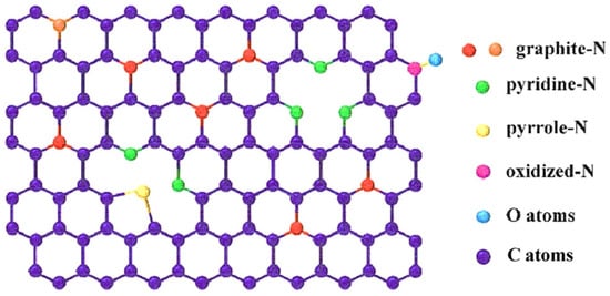 Nitrogen atoms combine with the sp2 hybridized carbon lattice network to form four forms of nitrogen atom bonding states (as shown in Figure 5): pyridine-N, pyrrole-N, graphite-N, and oxidized-N. The changes in the physical and chemical properties of the carbon material caused by nitrogen doping enhance both its energy storage and electrocatalytic performance (Table 4 below).