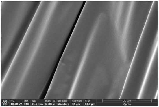 The scanning electron microscope morphology of matrix asphalt, CF-modified asphalt, and PUP/CF composite-modified asphalt was studied, as shown in Figure 12, Figure 13 and Figure 14.