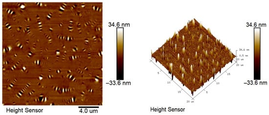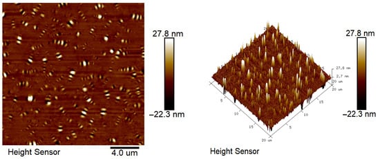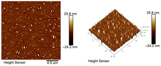 The results of atomic force microscopy of matrix asphalt, CF-modified asphalt, and PUP/CF composite-modified asphalt are shown in Figure 15, Figure 16 and Figure 17.
