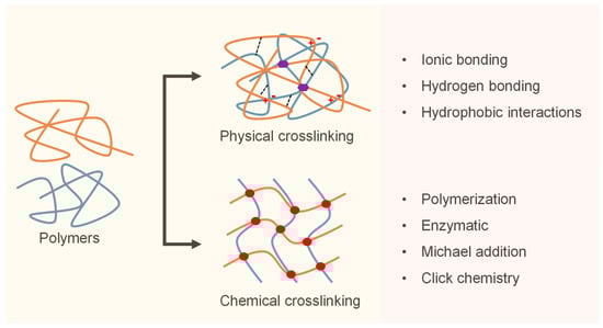 Schematic representation of hydrogel crosslinking mechanisms.