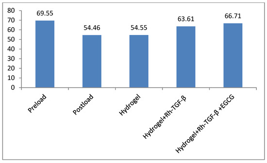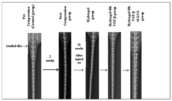 As per the digital X-ray, the disc height Preload and Postload (n = 3) and Hydrogel, Hydrogel + Rh-TGF-β and Hydrogel + Rh-TGF-β + EGCG (n = 6).