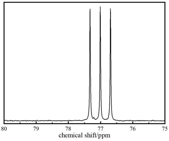 To determine the specific chemical composition of polymer J-1, Carbon-13 Nuclear Magnetic Resonance (13C NMR) characterization was performed (spectrum shown in Figure 3). Analysis of key characteristic peaks revealed that the methylene group (−CH2) in the five-membered ring coordinated to the carbonyl group of the NVP unit produces a characteristic resonance peak at δ = 77.8 ppm, while the methyl group (−CH3) in the AMPS structure corresponds to a significant signal at δ = 76.1 ppm. By cross-validating the chemical shift characteristics of each functional group, the molecular structure model of copolymer J-1 was successfully established (Figure 4).