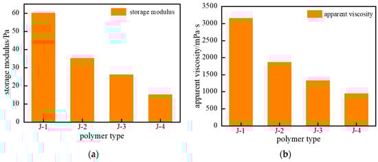 This section primarily investigates four different polymer types: J-1, J-2, J-3, and J-4. Polymer J-1 was synthesized via terpolymerization of acrylamide (AM), 2-acrylamido-2-methylpropanesulfonic acid (AMPS), and N-vinylpyrrolidone (NVP). Its molecular weight distribution ranges from 3.0 × 106 to 5.0 × 106 Da, with a hydrolysis degree controlled between 15~20%. The comparative polymer J-2 is a copolymer of AM and AMPS. Although it maintains a similar molecular weight level (3.0 × 106~5.0 × 106 Da), its hydrolysis degree range is lower (10~15%). Polymers J-3 and J-4 are both low-molecular-weight linear polymers based on acrylamide monomers. Both were produced via controlled hydrolysis processes, resulting in stable hydrolysis degrees of 20~25%, while their molecular weights are significantly lower than those of the first two systems.