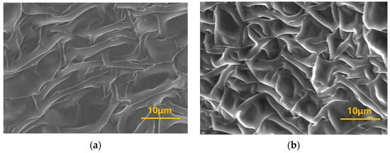 Environmental Scanning Electron Microscopy (ESEM) was employed to characterize the three-dimensional (3D) network microstructure of gels formed by crosslinking different concentrations of polymer J-1 (0.4%, 1.0%) with the organic phenolic resin crosslinker system (HMTA-catechol). This provides a micro-mechanistic analysis of the gelation behavior. The microstructure images (Figure 7) reveal that the density of the 3D network in the gel system significantly increases with higher J-1 concentration, and the size of most meshes within the network structure also decreases. This phenomenon occurs because an increase in polymer concentration leads to a corresponding increase in the number of amide groups (−CONH2) on the polymer chains. This increases the total number of active crosslinking sites between the polymer molecules and the phenolic crosslinker, accelerating the crosslinking reaction rate. Consequently, the resulting gel exhibits a denser 3D mesh structure and significantly higher gel strength.