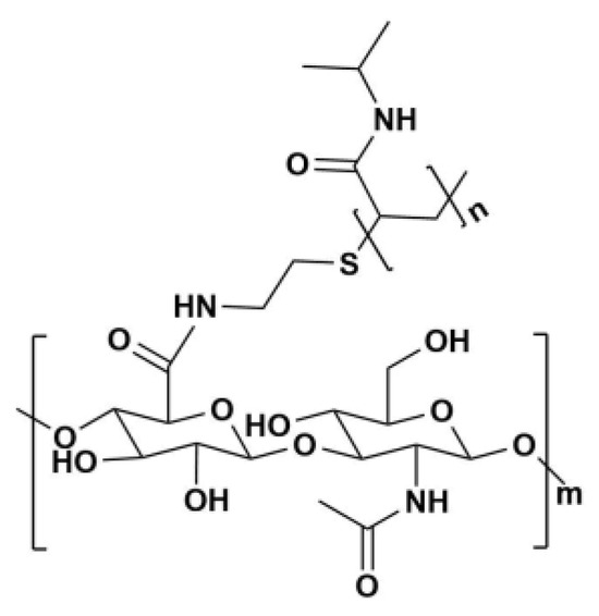 Hyaluronic acid or HA was purchased from Liuzhou Shengqing Biotech Co., Ltd. (Guangxi, China). The molecular weight is 45–65 kDa. Poly(N-isopropylacrylamide) or pNIPAM was purchased from Sigma-Aldrich (MO, USA). Its molecular weight was 5500 Da. HA-g-pNIPAM polymer was synthesized via an EDC/NHS coupling reaction. Sodium hyaluronate was dissolved in ultrapure water. The reaction proceeded at room temperature for 48 h, and the product was purified by 3-day dialysis before freeze-drying. HA-g-pNIPAM nanogels were subsequently prepared by dissolving the polymer in ultrapure water (0.5% w/v) and sonication for 30 min, followed by overnight settling at 4 °C. All preparation process was described in a previous study [8].