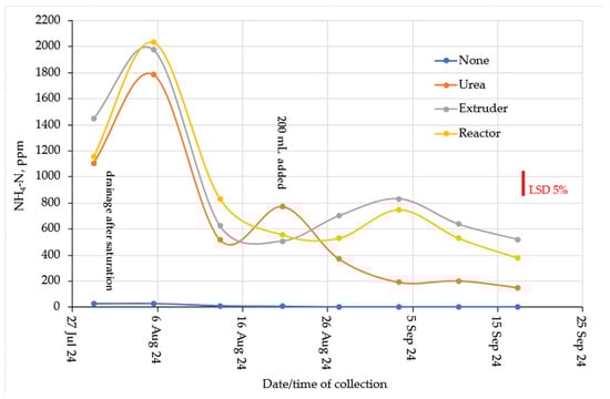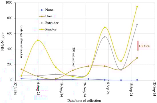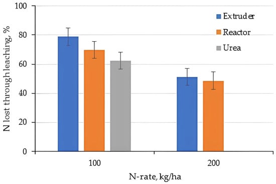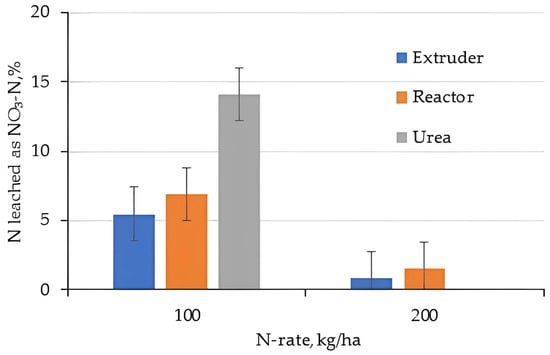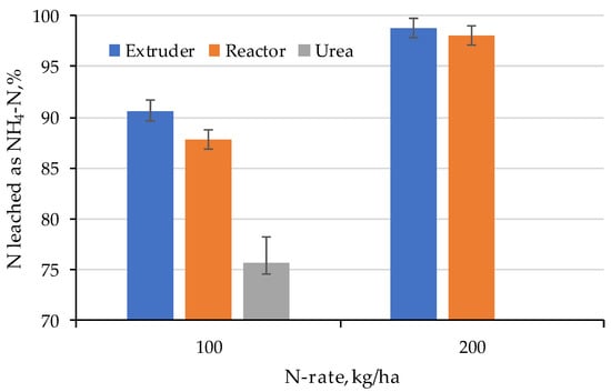 Total N loss was smaller if N was applied as a hydrogel, but still between 10 and 15%. The relative difference between the low (100 kg/ha) and high N rate (200 kg/ha) was small, but given the higher absolute rate, Ammonium leaching increases with hydrogel application rates. Hydrogels produced based on the biopolymer chitosan and casein to carry urea to the soil released 80% of the urea after 50 days applied to the soil, reinforcing the gradual release effect of nutrients [].