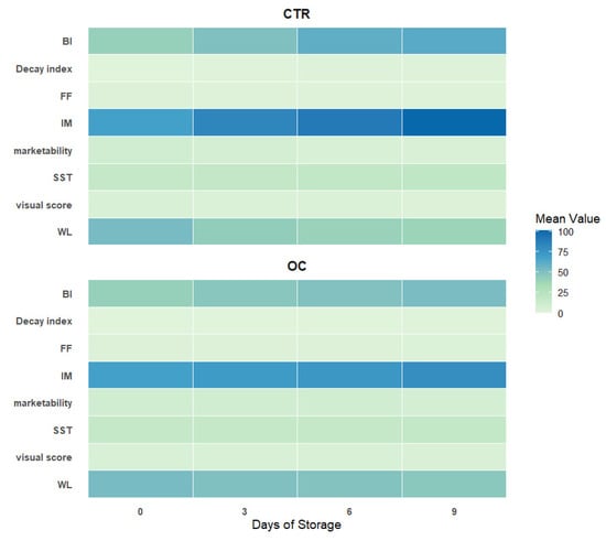 | OC | 39.12 ± 0.34 aA | 36.45 ± 0.14 aA | 30.11 ± 0.16 aA | 24.36 ± 0.74 aA | |