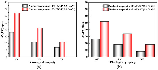 The influence of FNS on the rheological properties of Na-Bent base mud (a) Before aging; (b) After aging.