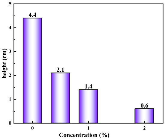 The rising height of the water in the glass capillary tube after soaking with different concentrations of FSN.