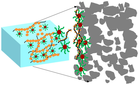To tackle wellbore instability, previous research has explored various chemical strategies, including the use of polymer inhibitors, inorganic salts, and nanomaterials. Polymer inhibitors function by forming a physical barrier on the shale surface to restrict water ingress, while inorganic salts reduce hydration swelling by altering the ionic strength of drilling fluids [2,3]. Although these methods have shown promise, their effectiveness is often compromised in high-temperature environments or complex geological settings [4,5].