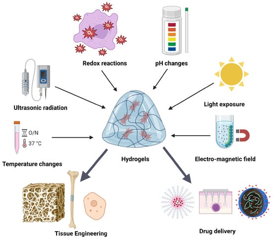 - Protsak, I.S.; Morozov, Y.M. Fundamentals and advances in stimuli-responsive hydrogels and their applications: A review. Gels 2025, 11, 30. [Google Scholar] [CrossRef]
