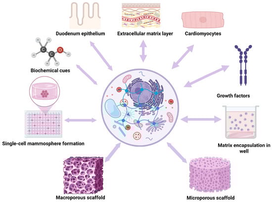| Tunable chemical and physical properties | Allows precise control of cell behavior (migration, proliferation, differentiation) | Fixed and challenging to modify | [71,72,73] |
