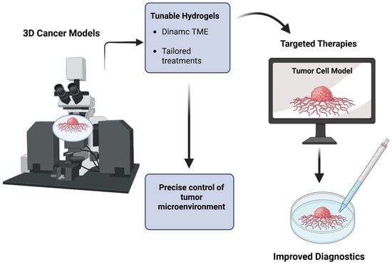 | Tunable hydrogels as drug carriers | Designed to deliver medication specifically to tumor sites based on local pathological conditions | Enhances treatment effectiveness while minimizing harm to healthy tissue | [119,120] |
