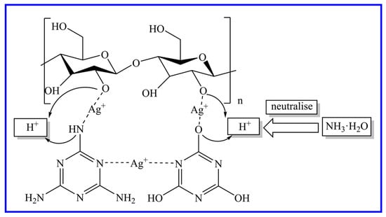Proposed interaction between cellulose, melamine, cyanuric acid, and Ag+.