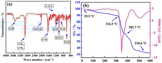 The FTIR (a) and TG (b) curves of acrylic resin.
