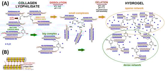 - Furusawa, K.; Sato, S.; Masumoto, J.; Hanazaki, Y.; Maki, Y.; Dobashi, T.; Yamamoto, T.; Fukui, A.; Sasaki, N. Studies on the Formation Mechanism and the Structure of the Anisotropic Collagen Gel Prepared by Dialysis-Induced Anisotropic Gelation. Biomacromolecules 2012, 13, 29–39. [Google Scholar] [CrossRef]