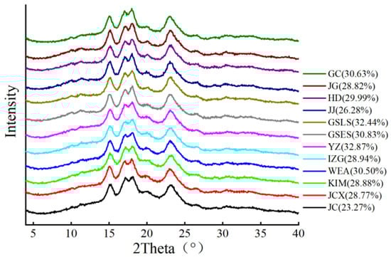 2.2.2. The Relative Crystallinity and Short-Range Order of Different Rice Starches