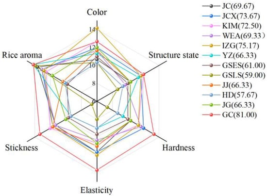 2.3.3. Sensory Evaluation of FWRNs Produced from Different Rice Varieties