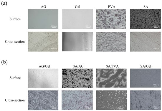 - Chen, H.; Lan, X.; Guan, X.; Luo, R.; Zhang, Q.; Ren, H.; Xu, Z.; Tang, J. Comparative study on the effects of chitosan, carrageenan, and sodium alginate on the film-forming properties of fish skin gelatin. LWT 2024, 199, 116111. [Google Scholar] [CrossRef]