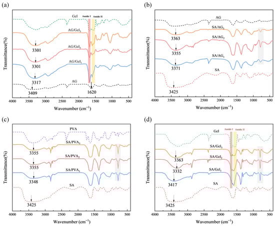 | Sample | AG | Gel | PVA | SA | AG/Gel | SA/AG | SA/PVA | SA/Gel |