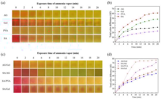 2.4. Color Response to Ammonia Vapor of Dual-Network Hydrogels