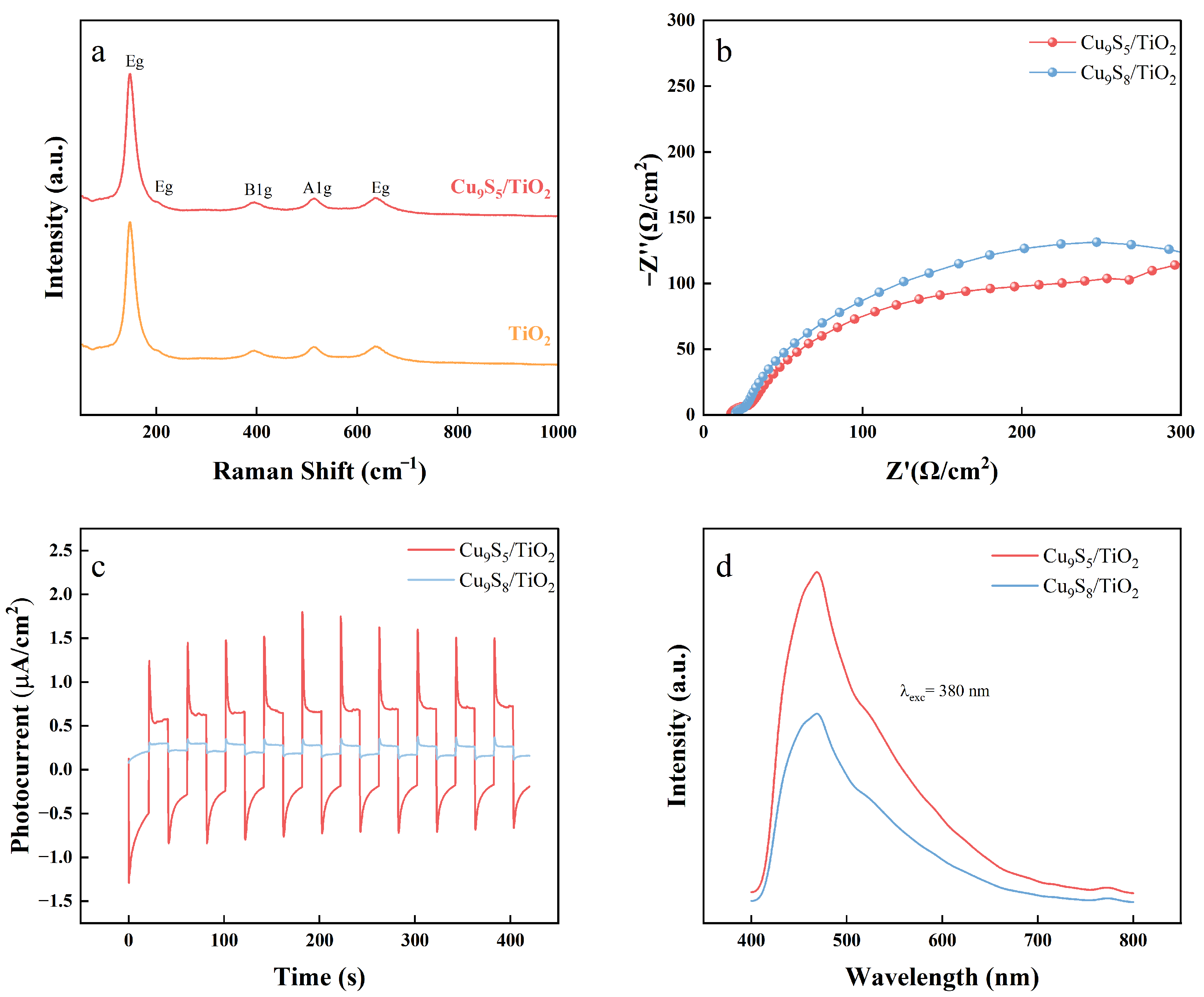 2.2. Optical and Photoelectrochemical Properties of Gel-Derived Cu9S5/TiO2 and Cu9S8/TiO2