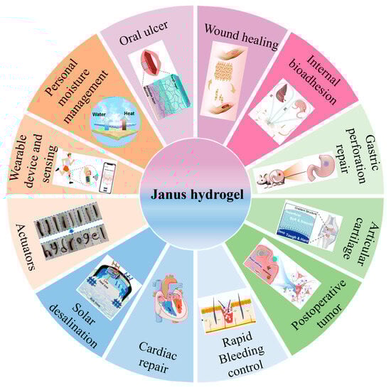 Diagram of Janus hydrogel’s applications.