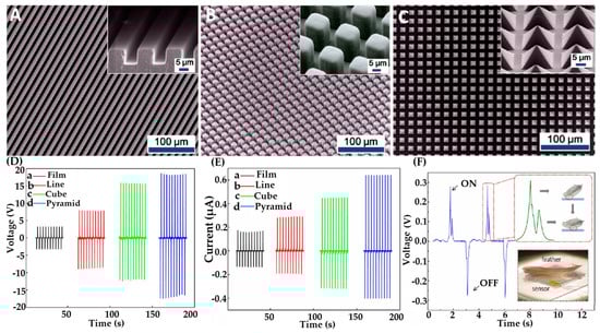 - Fan, F.-R.; Lin, L.; Zhu, G.; Wu, W.; Zhang, R.; Wang, Z.L. Transparent Triboelectric Nanogenerators and Self-Powered Pressure Sensors Based on Micropatterned Plastic Films. Nano Lett. 2012, 12, 3109–3114. [Google Scholar] [CrossRef]