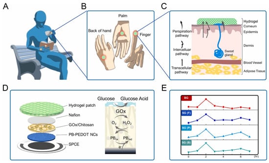 - Lin, P.-H.; Sheu, S.-C.; Chen, C.-W.; Huang, S.-C.; Li, B.-R. Wearable hydrogel patch with noninvasive, electrochemical glucose sensor for natural sweat detection. Talanta 2022, 241, 123187. [Google Scholar] [CrossRef] [PubMed]