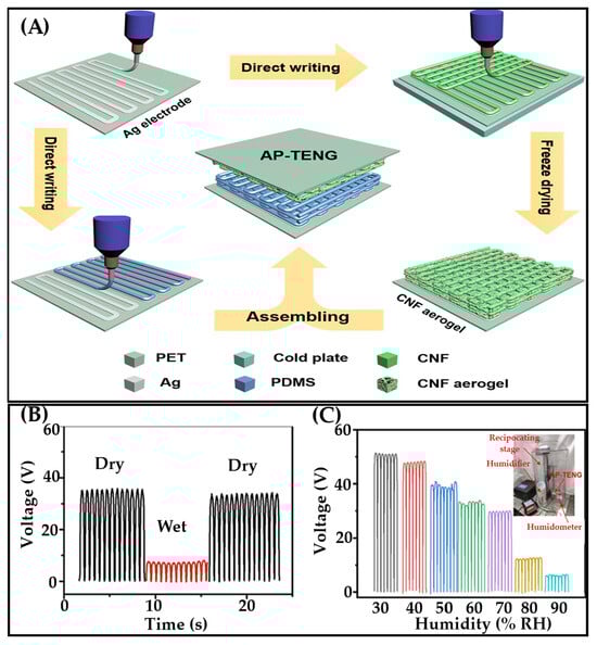 - Qian, C.; Li, L.; Gao, M.; Yang, H.; Cai, Z.; Chen, B.; Xiang, Z.; Zhang, Z.; Song, Y. All-printed 3D hierarchically structured cellulose aerogel based triboelectric nanogenerator for multi-functional sensors. Nano Energy 2019, 63, 103885. [Google Scholar] [CrossRef]