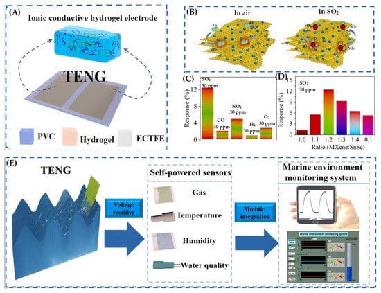 The multifunctionality of gel-based materials enables their integration into multiple layers of TENG architecture, from the triboelectric interface to the electrode and electrolyte components. Their tunable conductivity, adaptable morphology, and mechanical resilience make gel-based materials highly suitable for advanced sensing applications, including physiological monitoring, environmental detection, and human–machine interaction.