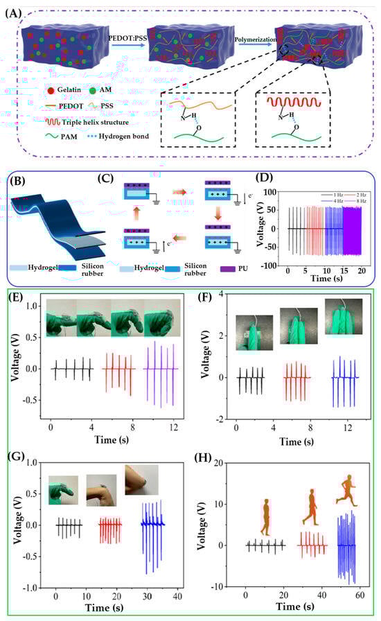 - Huang, S.; Wang, W.; Yang, C.; Liu, J.; Li, K.; Zhou, L.; Zhang, H.; Zhang, D. Highly Stretchable Conductive Hydrogel-Based Flexible Triboelectric Nanogenerators for Ultrasensitive Tactile Sensing. Polymers 2025, 17, 342. [Google Scholar] [CrossRef] [PubMed]
