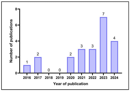 Overview of the number of publications including the search terms in their title and/or abstract per year from 2016 to 2024 (created by D.M. Seneviratne using GraphPad Prism 10.5.0).