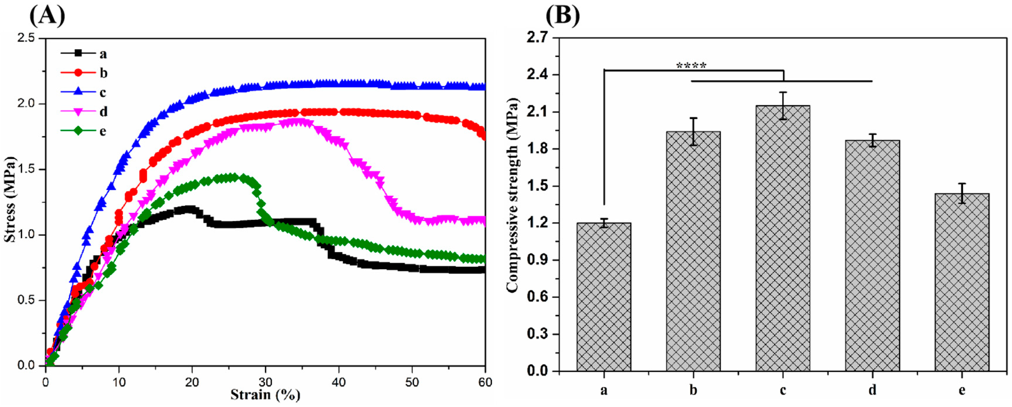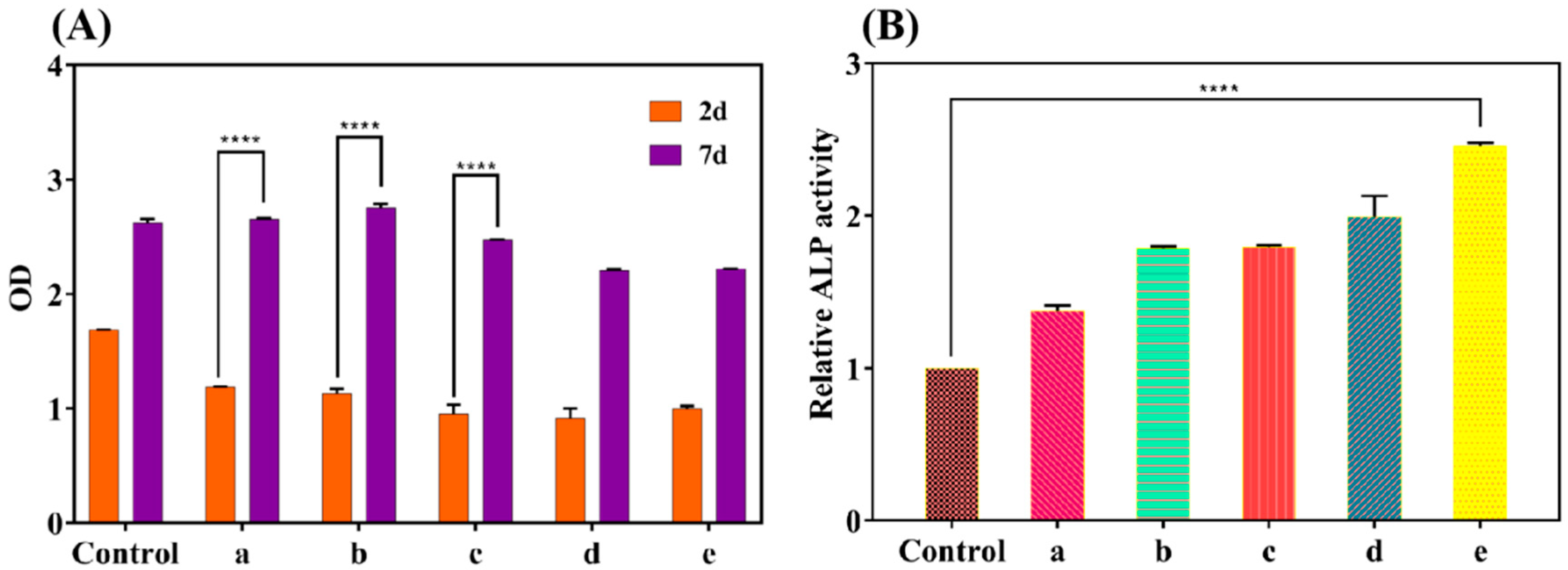 4.4. In Vitro Swelling Behavior, Biodegradability, and Biomineralization Measurement