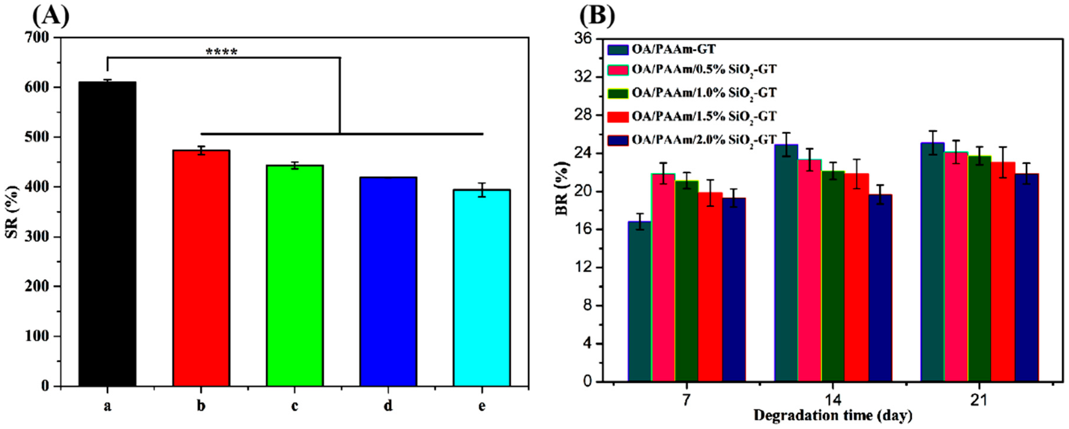 OA/PAAm/1.0%SiO2-GT | 83.55 | 0.147 ± 0.002 |