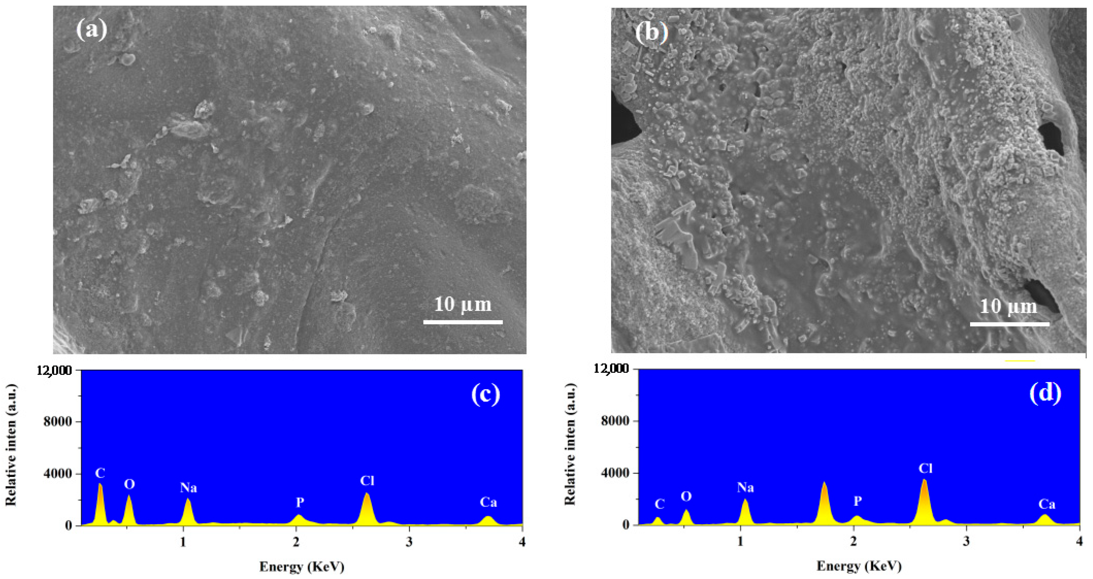 - Takadama, H.; Kim, H.M.; Kokubo, T.; Nakamura, T. X-ray photoelectron spectroscopy study on the process of apatite formation on a sodium silicate glass in simulated body fluid. J. Am. Ceram. Soc. 2002, 85, 1933–1936. [Google Scholar] [CrossRef]