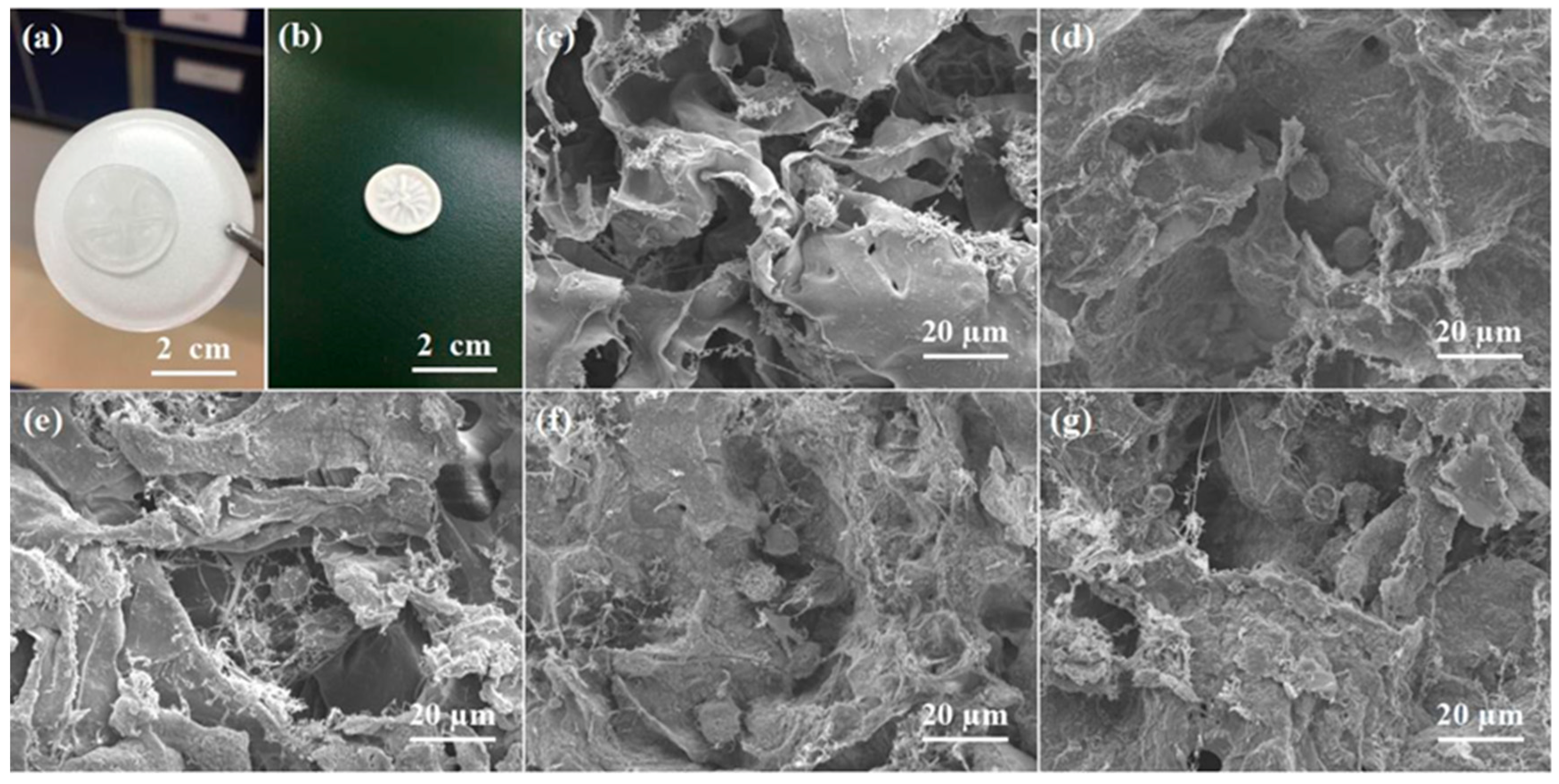 - Li, Z.Y.; Chen, X.Q.; Bao, C.L.; Liu, C.; Liu, C.Y.; Li, D.Z.; Yan, H.Q.; Lin, Q. Fabrication and evaluation of alginate/bacterial cellulose nanocrystals-chitosan-gelatin composite scaffolds. Molecules 2021, 26, 5003. [Google Scholar] [CrossRef]